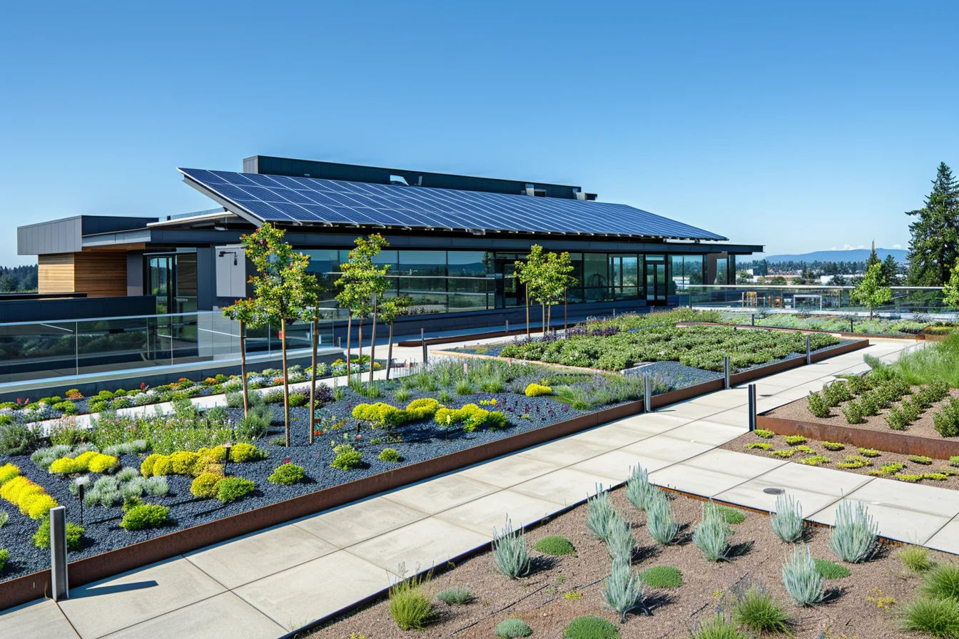 A 4,000 sq ft indoor forest atrium brings mature native trees into the workplace, improving air quality and reducing stress. The biophilic design contributed to 28% reduction in employee sick days and 15% increase in productivity scores.